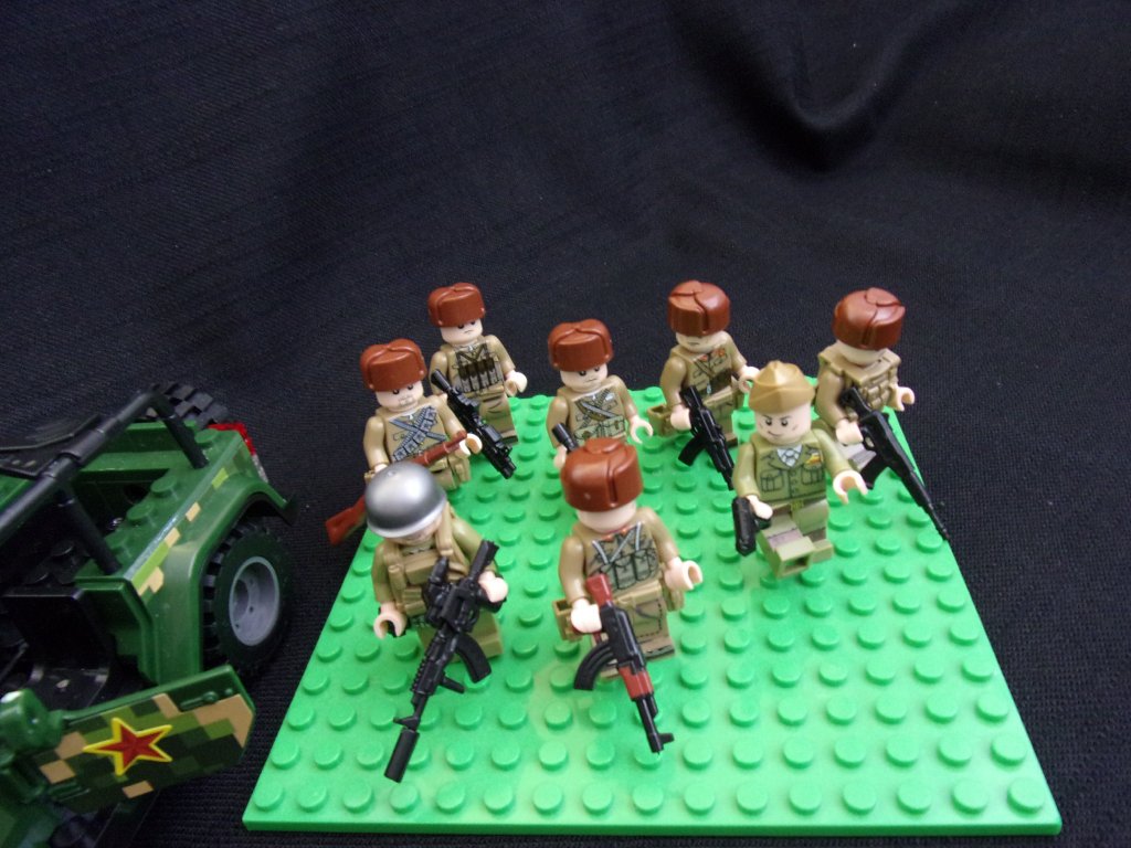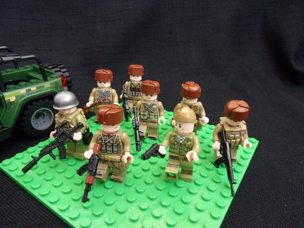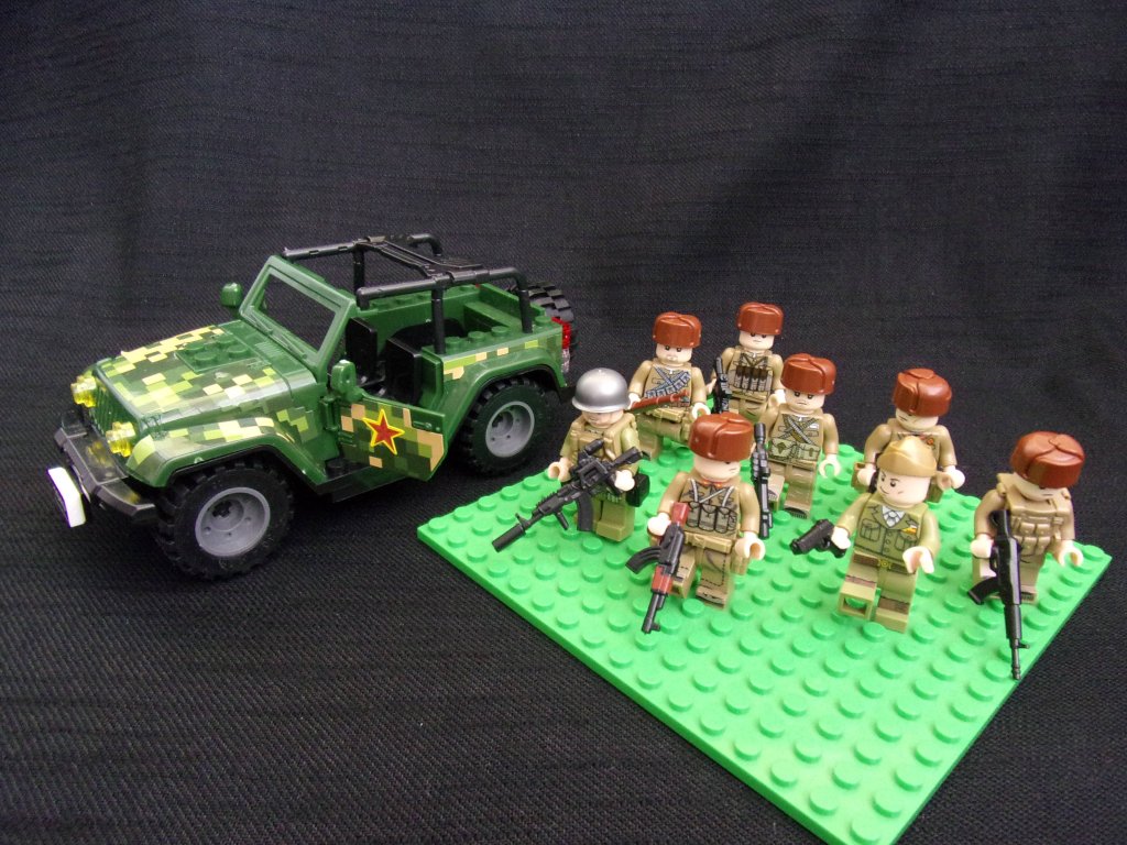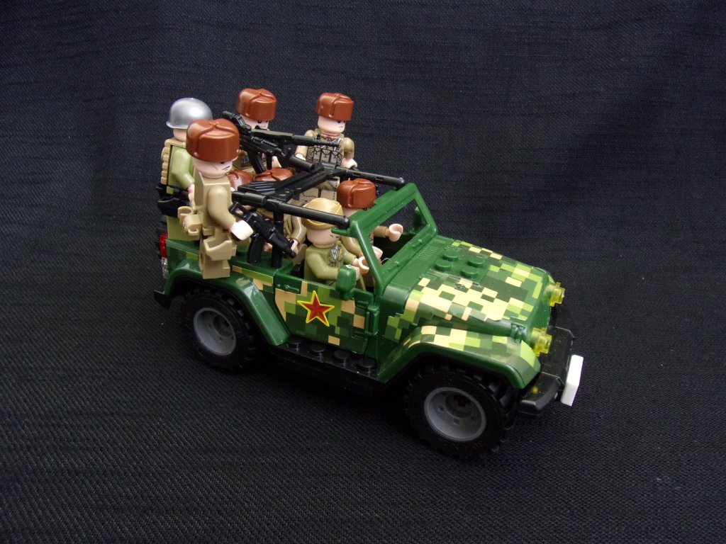 › Vojáci a Policie › 8 figurek vojáků + terení vůz